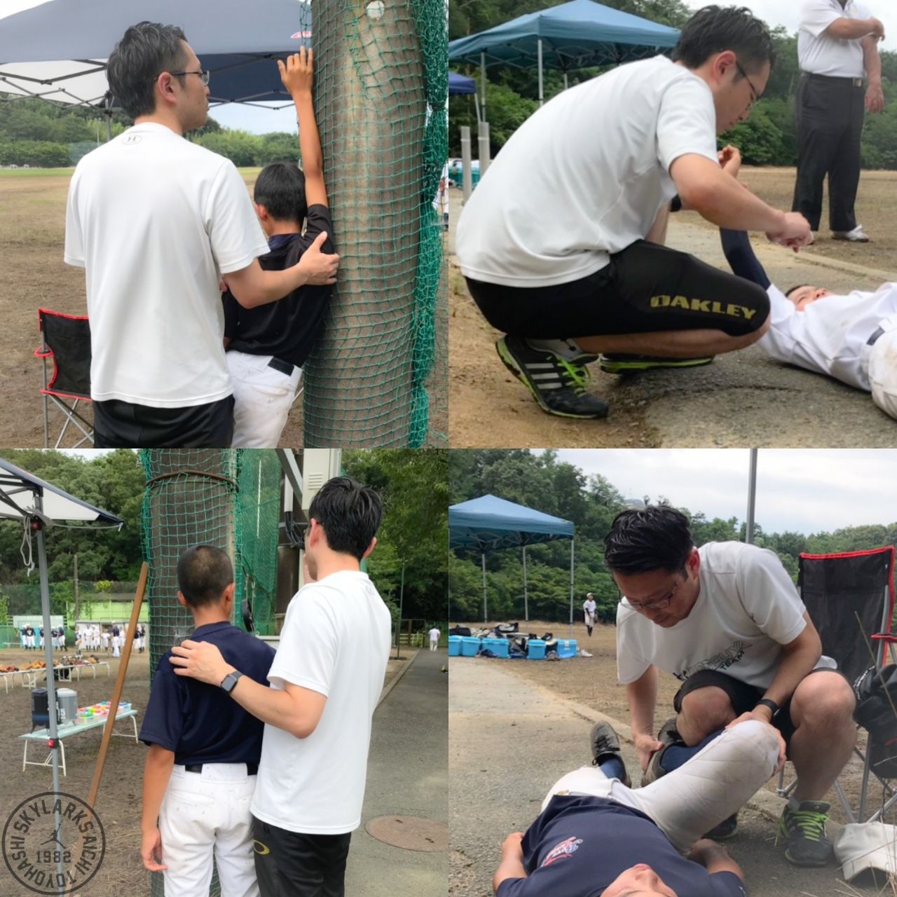 2019年07月08日 練習&体のケア! 梅雨ですね…。毎週のように週末が雨なのはイヤですね。土曜日は雨のため室内練習でした。日曜日は雨も上がり曇り空の中グランドで練習できました!蒸し暑く熱中症の危険性も高いのでこまめに休憩を取り水分・栄養補給をしながらバッティングや守備練習に励んでいました。そんな中OBでありトレーナーも引き受けてくれている藤本くん(四ツ谷接骨院 院長)が先週のメディカルチェックの結果や個人でできる予防法などを選手個々に教えに来てくれました。みんな真剣に聞いていました。毎日の体のケアが大切。体を守ることはケガを防止し、自分のパフォーマンス向上にも役に立つはずです。毎日コツコツと努力して欲しいと思います。藤本くん、忙しい中いつもありがとうございます。OBのみなさんの協力には本当に感謝しています。今後ともよろしくお願いします!☺️※29期生・30期生の画像をそれぞれのOBページ一番下に追加しました👍️豊橋スカイラークス・愛知豊橋ボーイズ